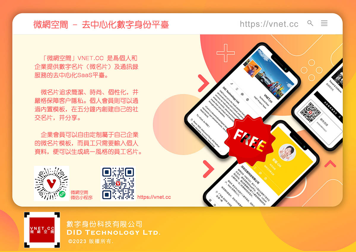 微網空間(VNET.CC)是一個嚴謹的社交商務名片(微名片)分享平臺。旨在推動傳統名片產業的數字化發展,助力企業踐行綠色環保,低碳商務(ESG)。
